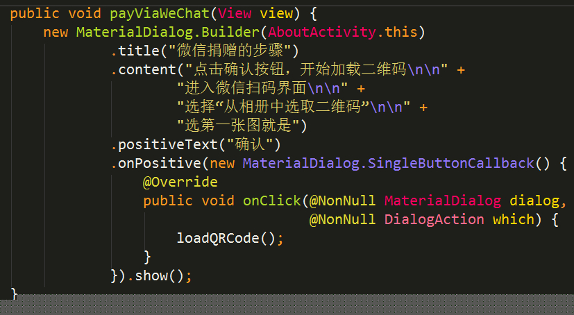 微信的很多Activity都是只能在它自己app的uid下启动,其他app调用不了,让用户主动截取二维码,然后扫描,实在是不明智之举,用户体验不太好。